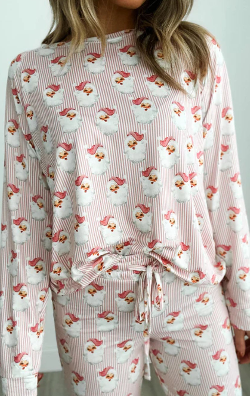 The Santa Claus print with the stripes adds a playful and festive touch.