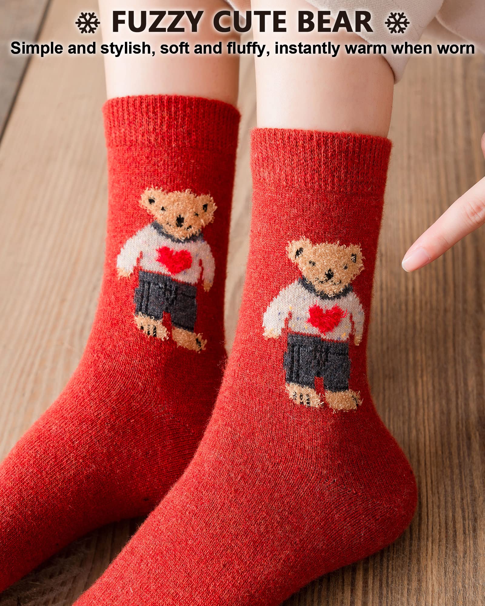 Cute Wool Socks Super Cozy Thick Crew Winter Socks Gifts, 5 Pairs